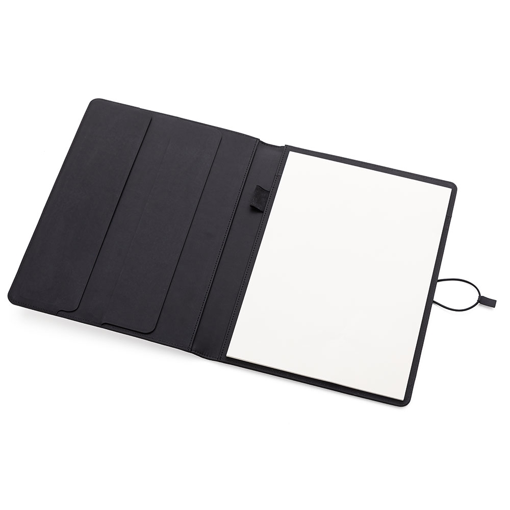 Produzida com capa almofadada em tecido de poliéster, essa pasta oferece conforto e durabilidade, sendo perfeita para reuniões, treinamentos e eventos corporativos.